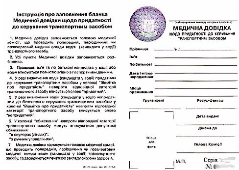 ► Дійсна медична довідка (встановленого зразка), щодо придатності до керування транспортним засобом категорії В (форма о83/о)